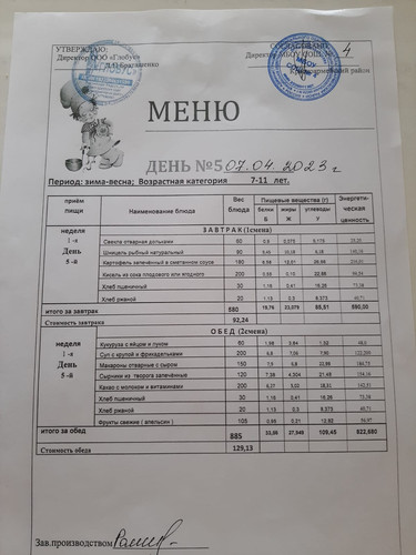 Фотографии меню апрель 2023